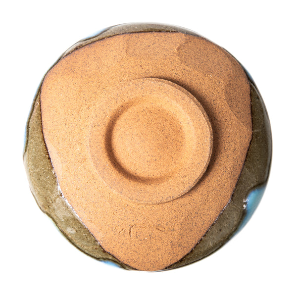 Hagi ware (萩焼 – Hagi-yaki) originates from the town of Hagi in Yamaguchi Prefecture and is regarded as one of the most prestigious styles for the tea ceremony, ranked alongside Raku and Karatsu in the proverb "First Raku, second Hagi, third Karatsu" (一楽二萩三唐津). While traditional Hagi is often known for its milky white or loquat-colored glazes, this chawan features a Celadon (青磁 – Seiji) glaze. This style overlays the soft characteristic of Hagi with the cool, jade-like hues of celadon. The glaze doesn’t sit flat on the surface; it has movement, pooling in the center and dripping slightly towards the base. The shape is relaxed and slightly asymmetrical, fitting naturally into the palms.